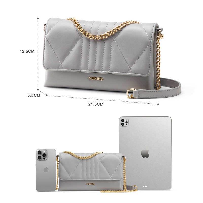 Vulkitty Womens Crossbody Bag Shoulder Bag with Adjustable Chain Strap Leather Messenger Bag Magnetic Buckle Closure, Grey