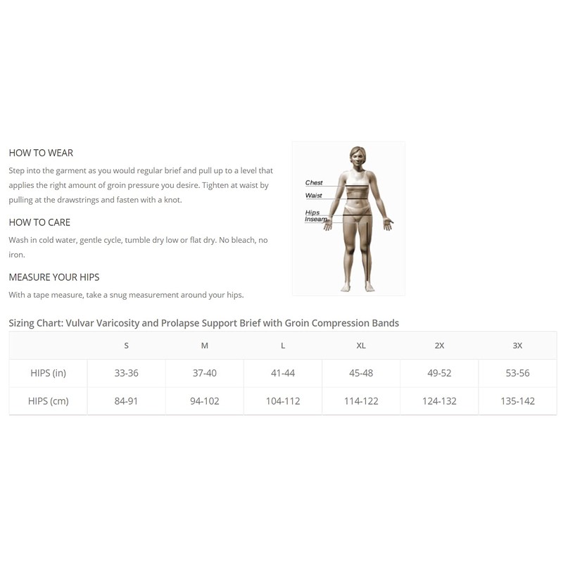- Wear during or after pregnancy including post C-sections for relief from vulvar varicosities, vulvar swelling, and Lymphedema. This garment uses a cotton crotch that works as a sleeve for shields that would be very helpful in the event of vaginal discharge common when vaginal infections such as candidiasis are present.