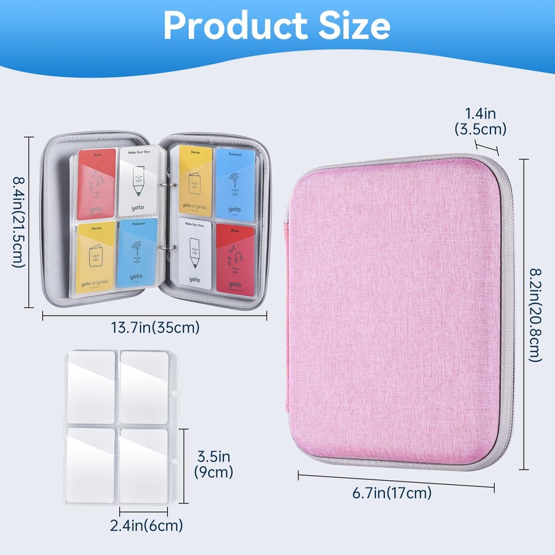 Vulxogo Card Holder for Yoto Cards 80 Cards Capacity Card Case Organizer with Zipper Card Binder for Yoto Player and Yoto Mini Cards Storage, Pink