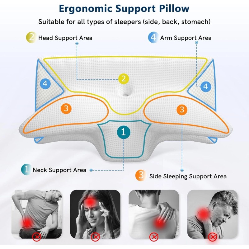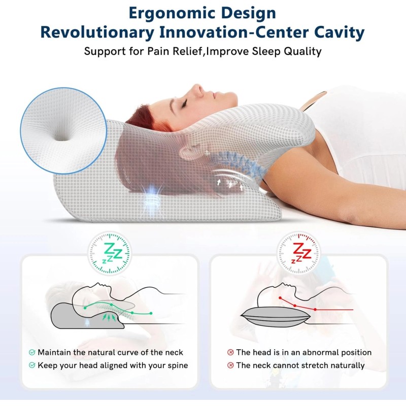 - 【 】Vuteehy cervical neck pillow unique hollow ergonomic design to help support and aligns your head,neck, shoulder and back in a neutral position, release neck and head pressure, relieve stress, and reduce muscle tension, a great pillow give you true relaxation.