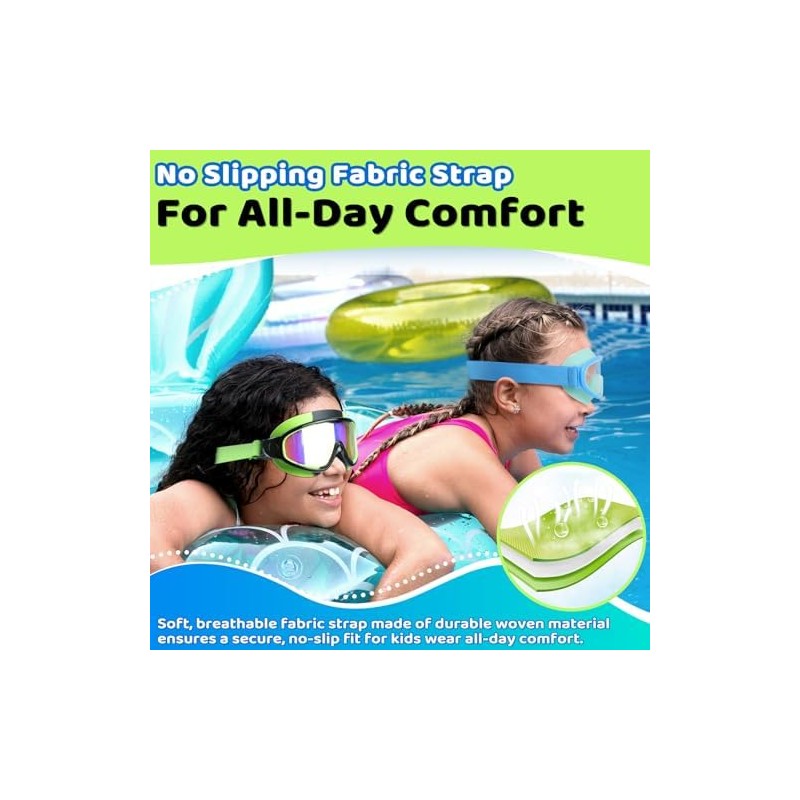 - The Most Comfortable Strap & No Hair-pulling: Our elastic fabric strap kid goggles is soft and has strong elasticity, with a width of 25mm, making it extremely comfortable to wear without pulling hair. Say goodbye to the hair-pulling worries of traditional silicone straps and enjoy the fun of swimming. The best toddler swim goggles, kid swimming goggles, and teens swim goggles, providing a comfortable fit for boys girls of various ages from 3-14.