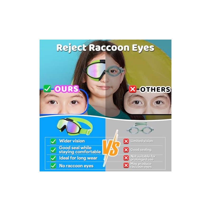 - Safety & No Leaking: Vvinca pool swim goggles are specially designed for children, girls, boys, teens, youth which toddlers ages 3-5& kids ages 6-14 years old. The ergonomic mask design ensures a perfect fit for different facial shapes, eliminating complaints about goggles falling off or letting water in. This guarantees a leak-free swimming experience. Vvinca goggles kids are vailable in multi-color combinations, you can choose the one your child loves.