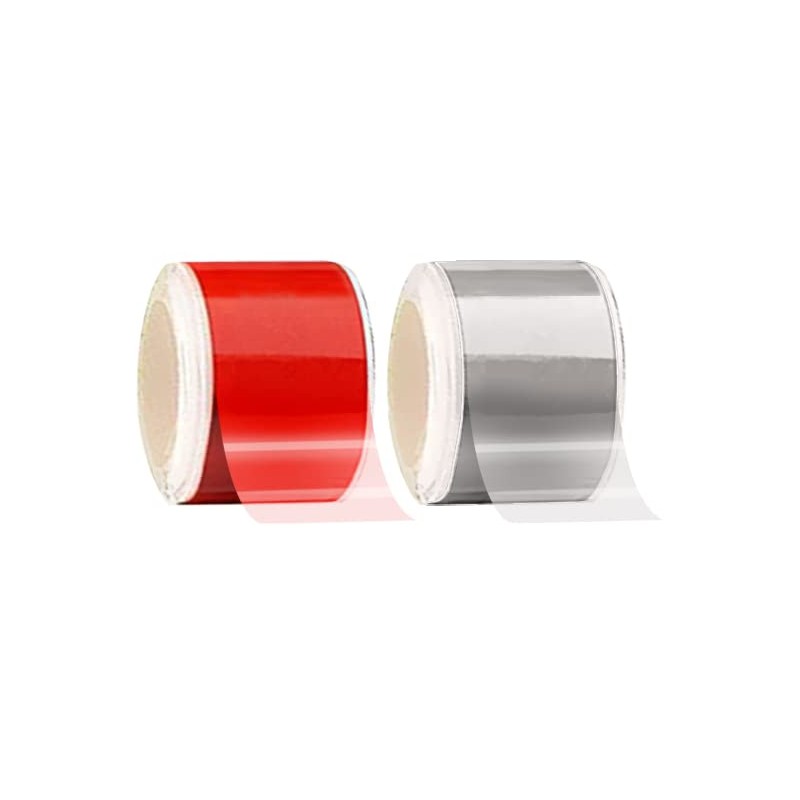 - Each pack includes two rolls; one red, one transparent.