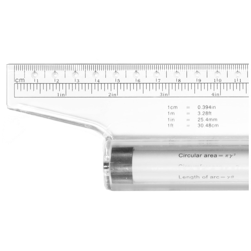 • FEATURE-PACKED: A built-in protractor to measure angles; measurements on the roller for drawing parallel lines at fixed distances, whilst gliding over the page; Pencil holes for drawing arcs and circles.