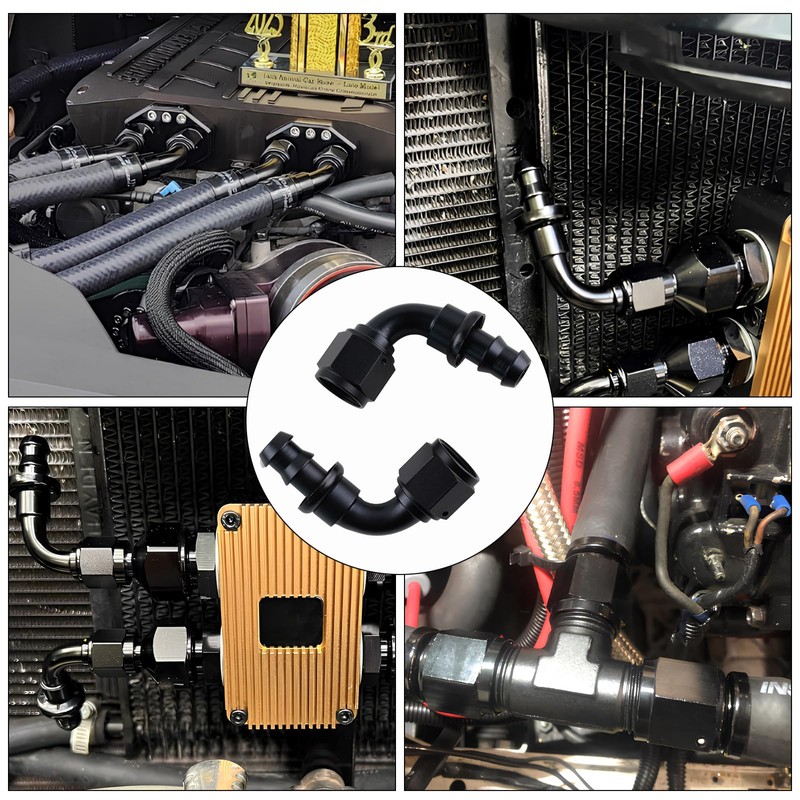 • 【Function】Swivel Hose End Fitting usually used for Oil/ Fuel/ Water/ Fluid/ Airline etc.Connect engine transmission oil cooler, engine and air filtration system, engine and cooling system. Suitable for EFI systems rubber push-lock oil hose.(Not compatible with PTFE hose, nylon baided hose or stainless steel braided hose.)