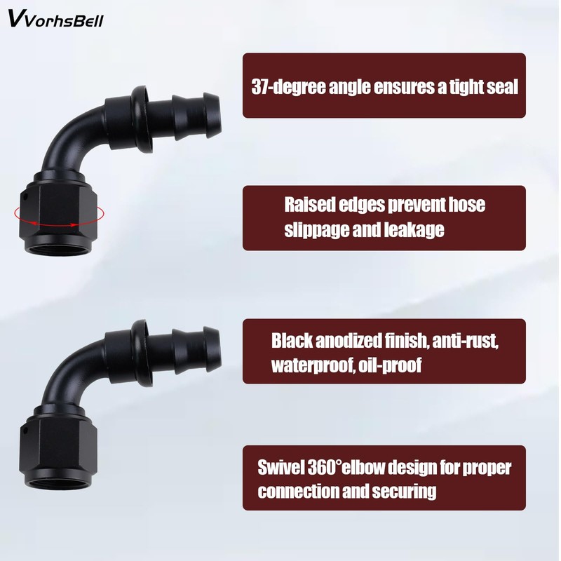 VVORHSBELL 8AN to 1/2 90 Degree Push Lock Hose Fitting End For Rubber Fuel Line Black (2PCS)
