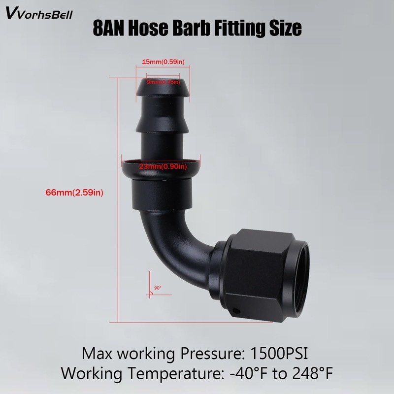 VVORHSBELL 8AN to 1/2 90 Degree Push Lock Hose Fitting End For Rubber Fuel Li...