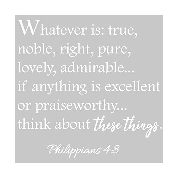 VWAQ Whatever is True, Noble, Right Philippians 4:8 Bible Wall Quotes Decal (Matte White)
