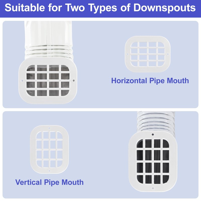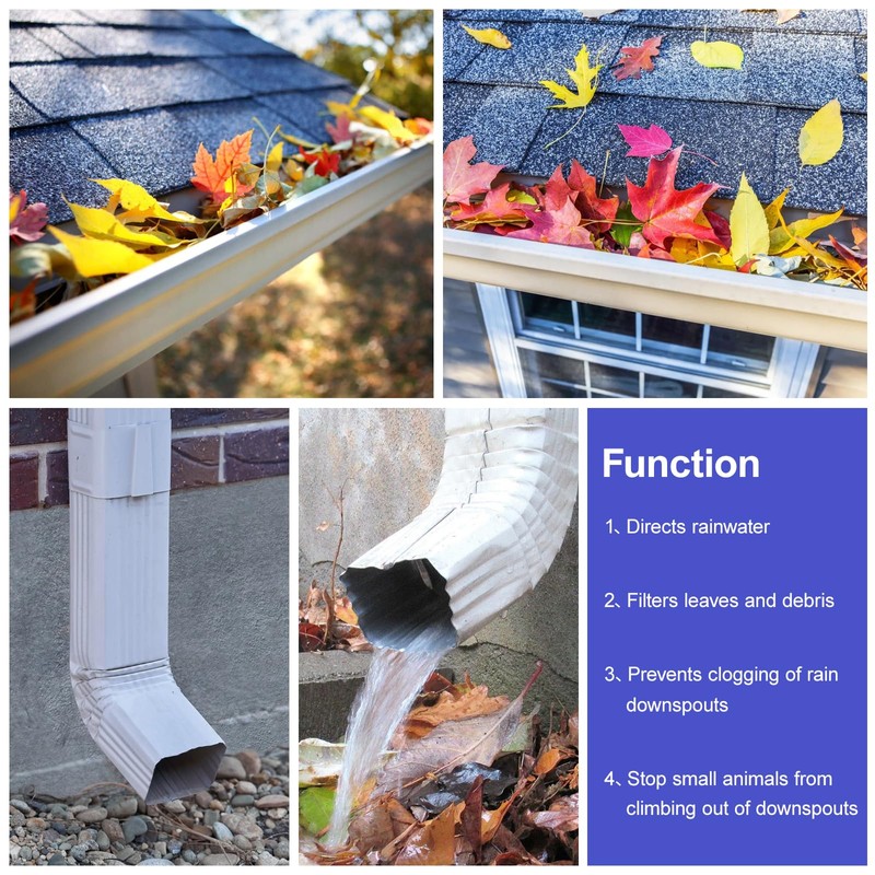 - Multifunctional: Gutter Outlet Strainer directs rainwater from the roof to the downspout. In addition, it has a filtering feature that blocks most leaves, debris, roof moss, branches, and other dirt from clogging downspouts or rain gutters. They also stop critters from climbing in, saving time and costly repairs! (Top gutters and bottom downspouts can be used together)