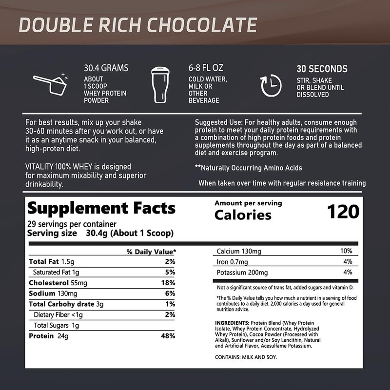 VYHTHY Gold Standard 100% Whey Protein Powder – Chocolate Flavor, 24g Protein Per Serving, Fast Absorbing & Easy Digesting, 29 Servings, 2 Pound