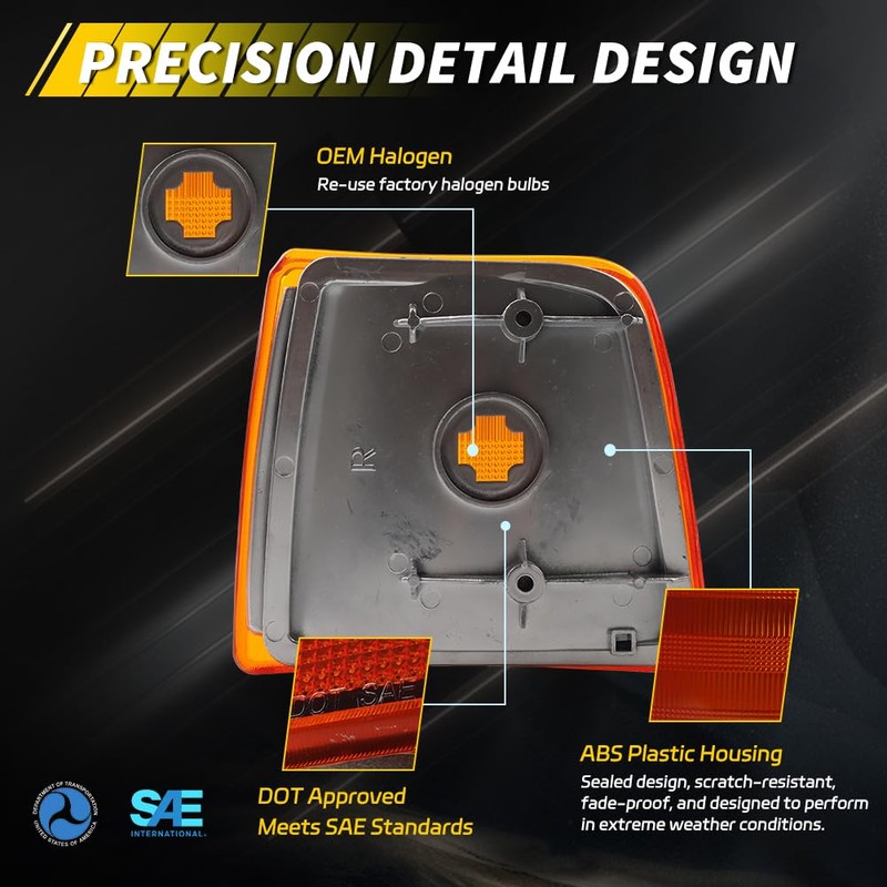 - [Effortless Installation] VYNTRAL Turn Signal Marker Light Cover 1:1 OEM replacement and high compatibility make it easy to install without any hassle. It replaces the old OEM halogen housing easily, giving you a recognizable appearance, improving your car's overall style.