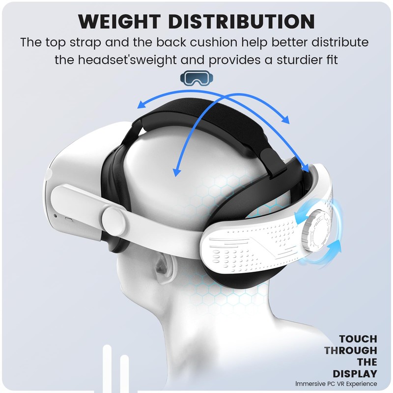 - Balanced Weight Distribution & Stability Engineered with an enlarged rear headrest and gravity-balanced design, our head strap evenly distributes the Quest 3/Quest 3S/Quest 2 weight, eliminating neck strain. The non-slip grip ensures a secure fit even during high-intensity activities, delivering a truly immersive experience.
