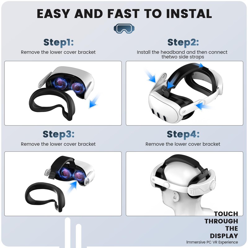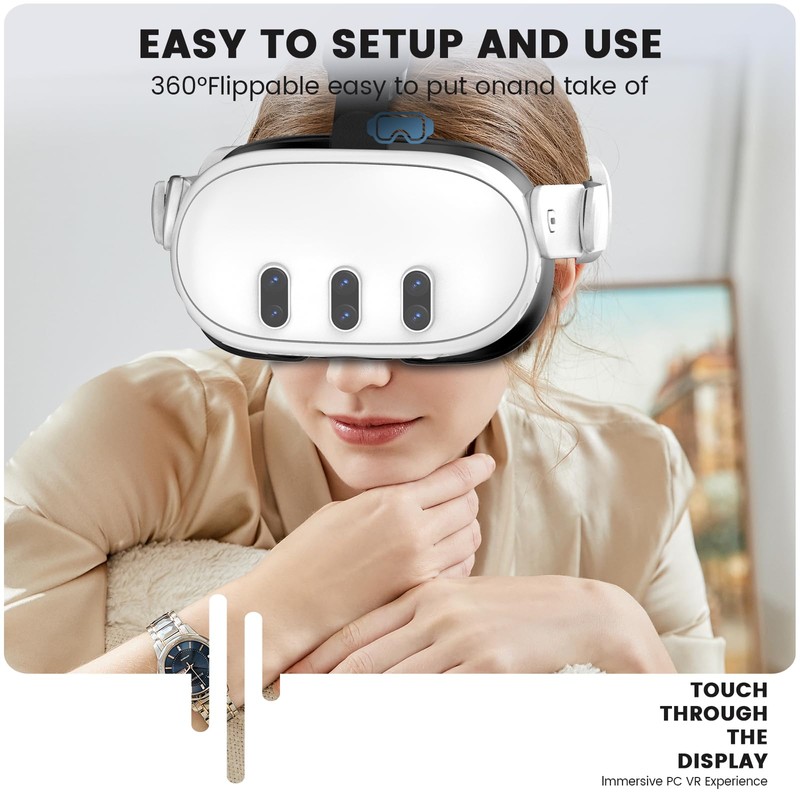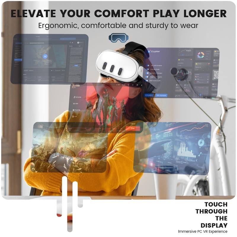 - Balanced Weight Distribution & Stability Engineered with an enlarged rear headrest and gravity-balanced design, our head strap evenly distributes the Quest 3 weight, eliminating neck strain. The non-slip grip ensures a secure fit even during high-intensity activities, delivering a truly immersive experience.