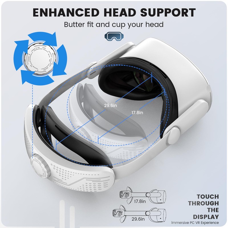 - All-Day Comfort & Pressure-Free Design Experience extended VR sessions with our ergonomic head strap featuring premium memory foam and soft PU leather cushions. The 0.67-inch thick padding reduces facial and head pressure by 40%, ensuring maximum comfort for gaming, movies, or workouts.
