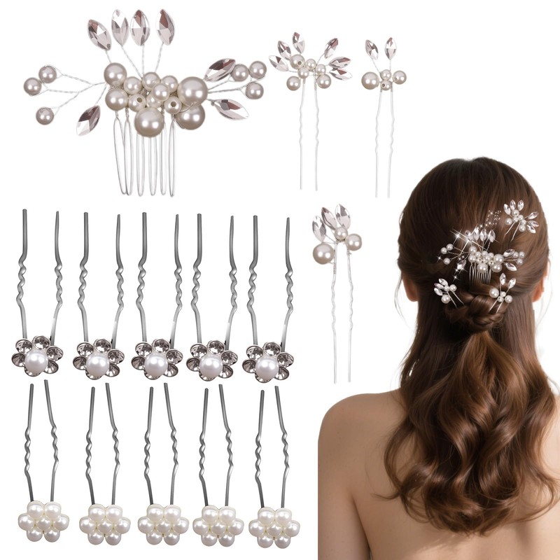 - Complete Bridal Hair Kit: Includes 1 crystal wedding comb and 14 bridal hair pins, offering everything you need to create a stunning hairstyle for you.