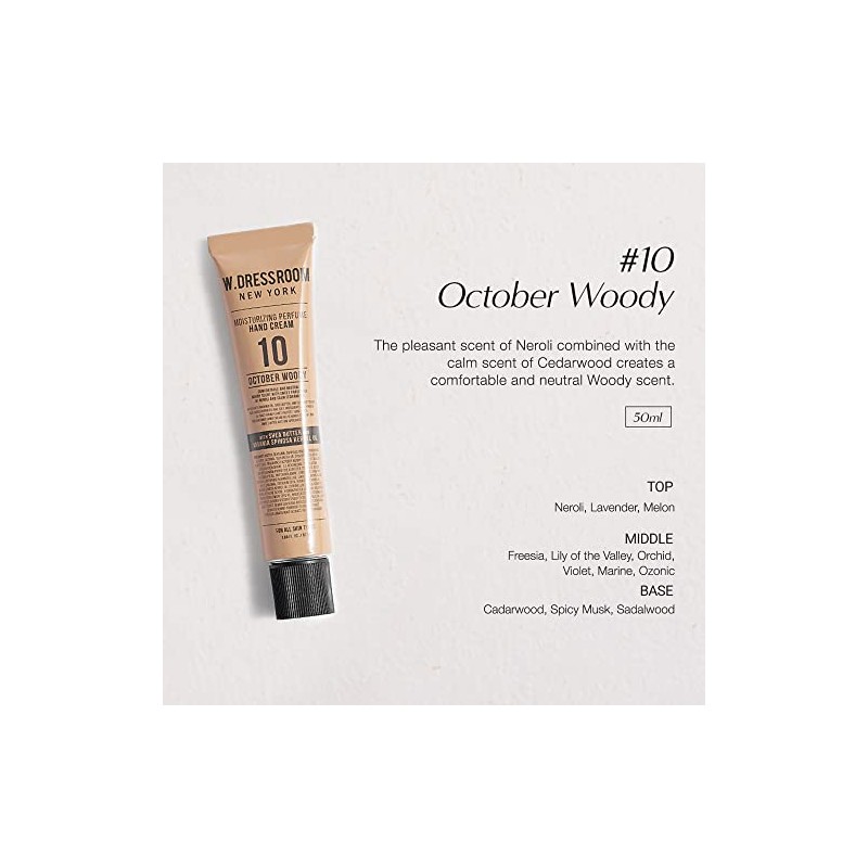 W.Dressroom No.10 October Woody Moisturizing Hand Cream for Dry Hands, Non-Greasy Korean Hand Lotion & Hand Care for Women with Hydrating Formula, Travel Size (1.69 fl oz)