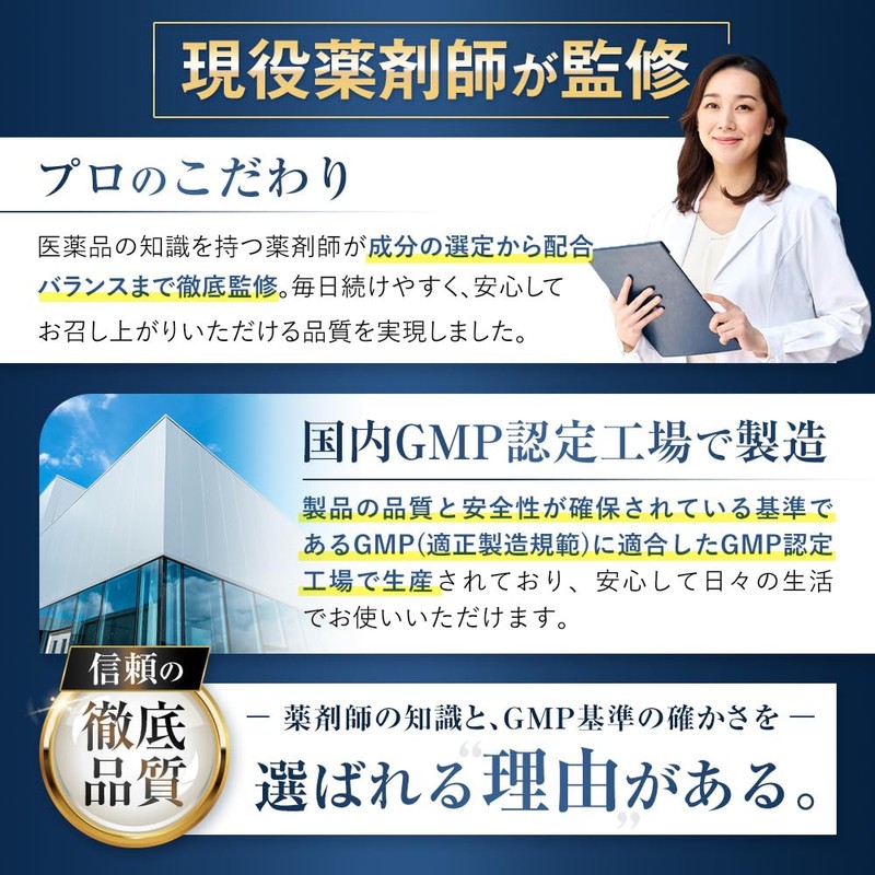 - ✅【GMP認定工場で製造|品質と安全を追求】 本品はGMP(適正製造規範)認定の国内工場で生産されています。原料の受け入れから出荷まで、厳しい品質管理体制のもと、皆さまに安心してお召し上がりいただける製品づくりを徹底しています。