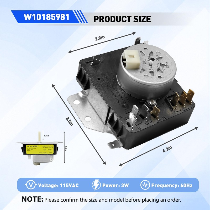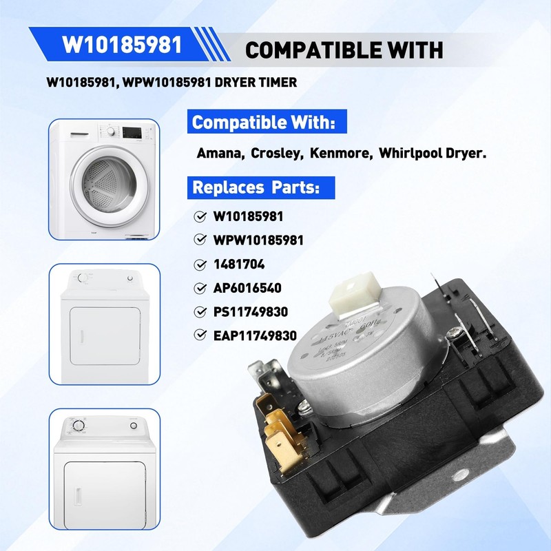 - 【Widely Compatible】- W10185981 WPW10185981 Dryer Timer Compatible with Whirlpool, Amana, Crosley, Kenmore Brand Dryer, easy to set accurate time, ensure safe operation of your dryer