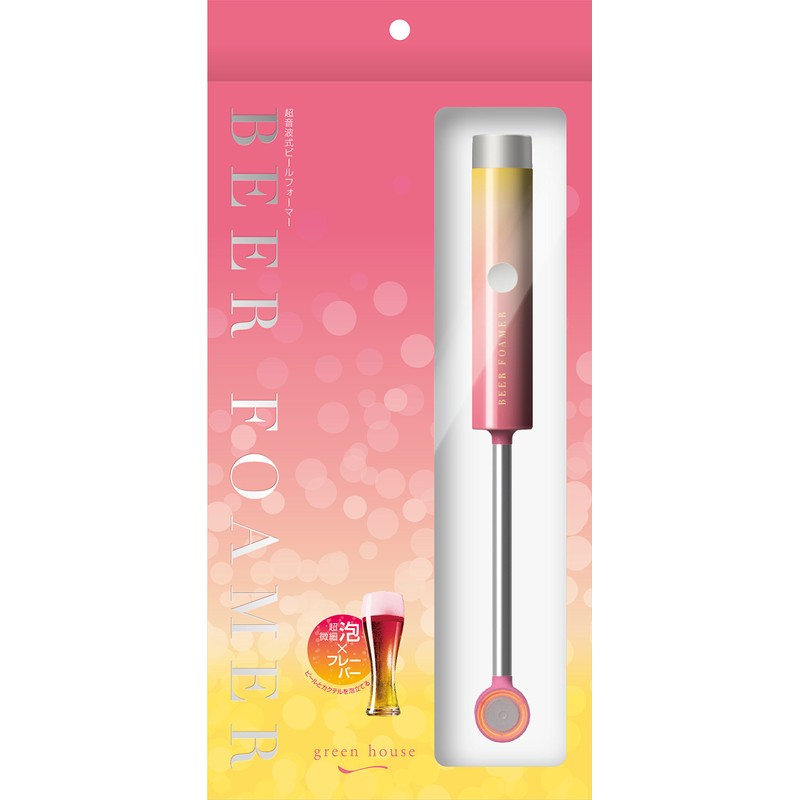 グリーンハウス ビールサーバー トロピカルピンク W24×D24×H237.5(mm) ビアフォーマー 超音波式 マドラー型 GH-BEERJS-PK
