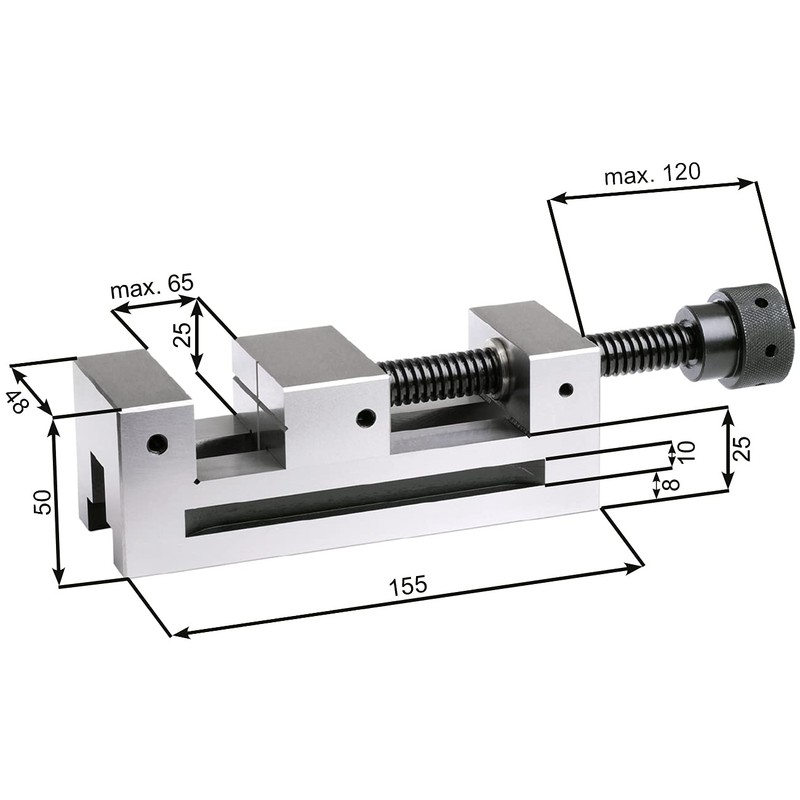 - Jaw width 48 mm - span width 65 mm - jaw height 25 mm - total length 155 mm - total height 50 mm - weight 2.1 kg