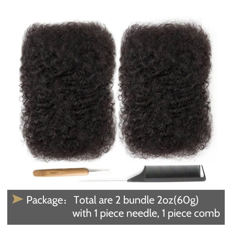 Package Includes: 2 pack Afro Kinky Bulk Human Hair, 1 piece single needle, 1 piece rat tail comb.