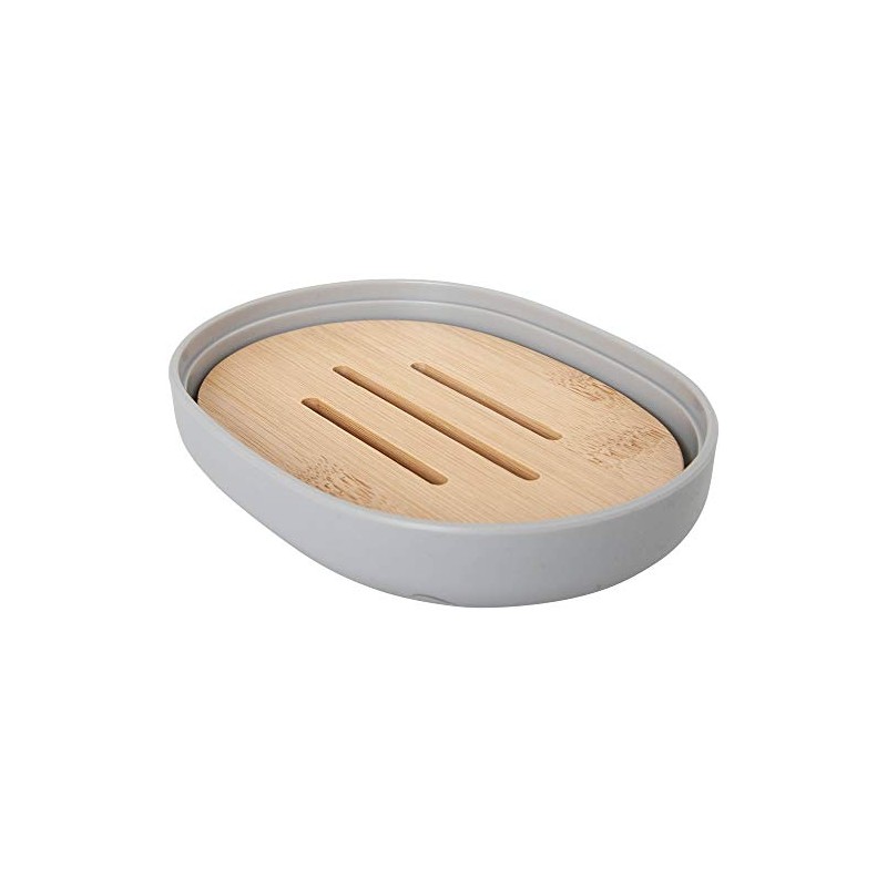 - Box contents: 1 x grey soap holder with removable bamboo draining rack