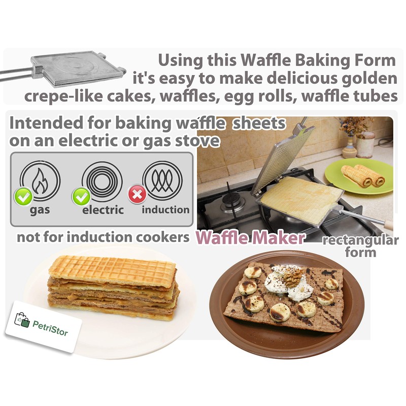 Waffle Maker rectangular shape - Waffle Cone Maker - Krumkake Iron - Wafer Maker - Waffle Makers - Waffle Cone Maker Machine - Stroopwafel Maker - Ice Cream Cone Maker - Wafer Iron - Вафельница