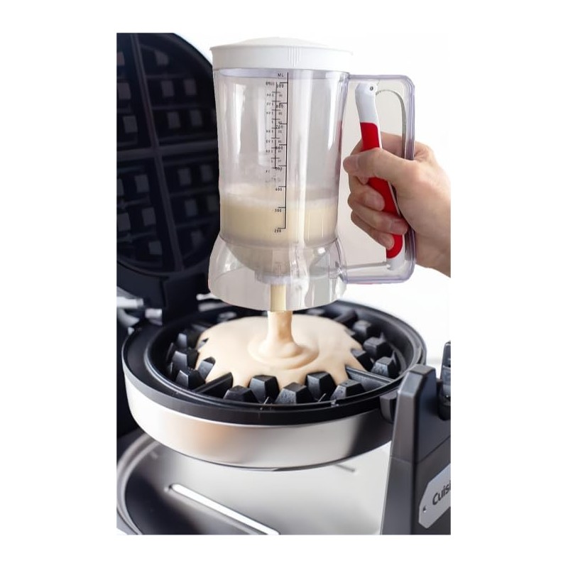 - Precision Batter Dispensing: The Waffles Batter Dispenser allows you to pour the perfect amount of batter onto the waffle iron with ease. Its ergonomic design and leak-free valve ensure accurate and mess-free dispensing every time.
