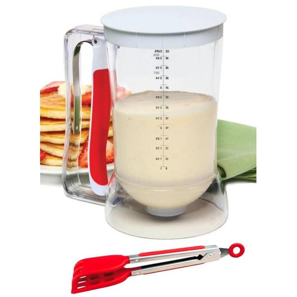 Waffles Batter Dispenser n Waffle Tongs Combo Set,Get Perfectly Fluffy Waffles Every Time! Batter Measuring Separator for Pancakes, Cupcake, Muffin Quick Filling Cookie Batter