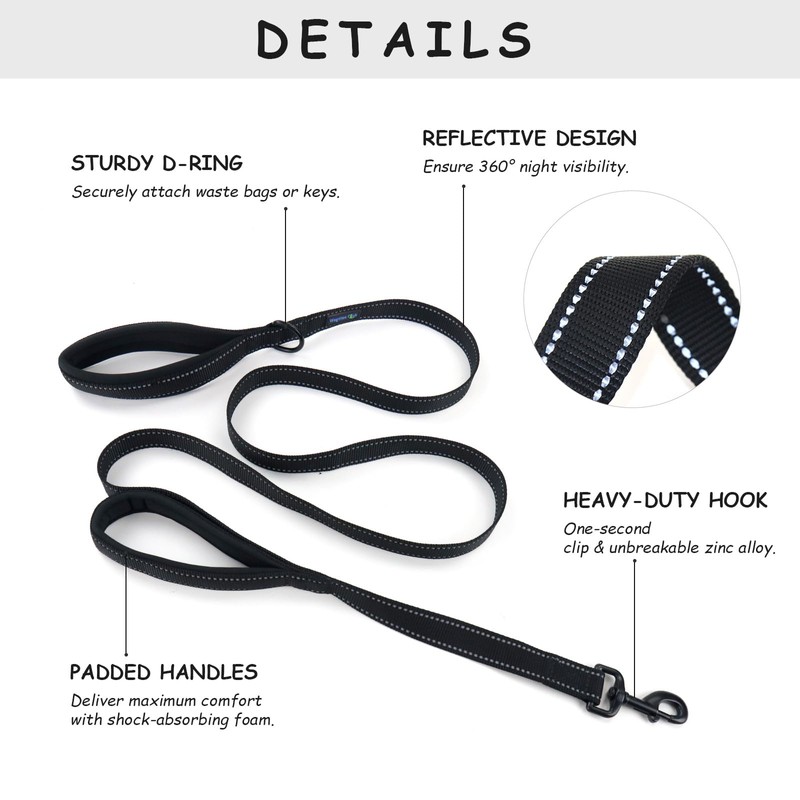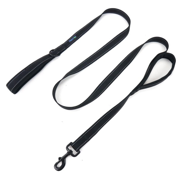 Wagtime Club Double Handle Dog Leash, 5ft Long Heavy Duty Dog Leash with Paded Traffic Handles for Extral Control and Training, Dual Handles Leads, Large Medium Small Dogs (Black)