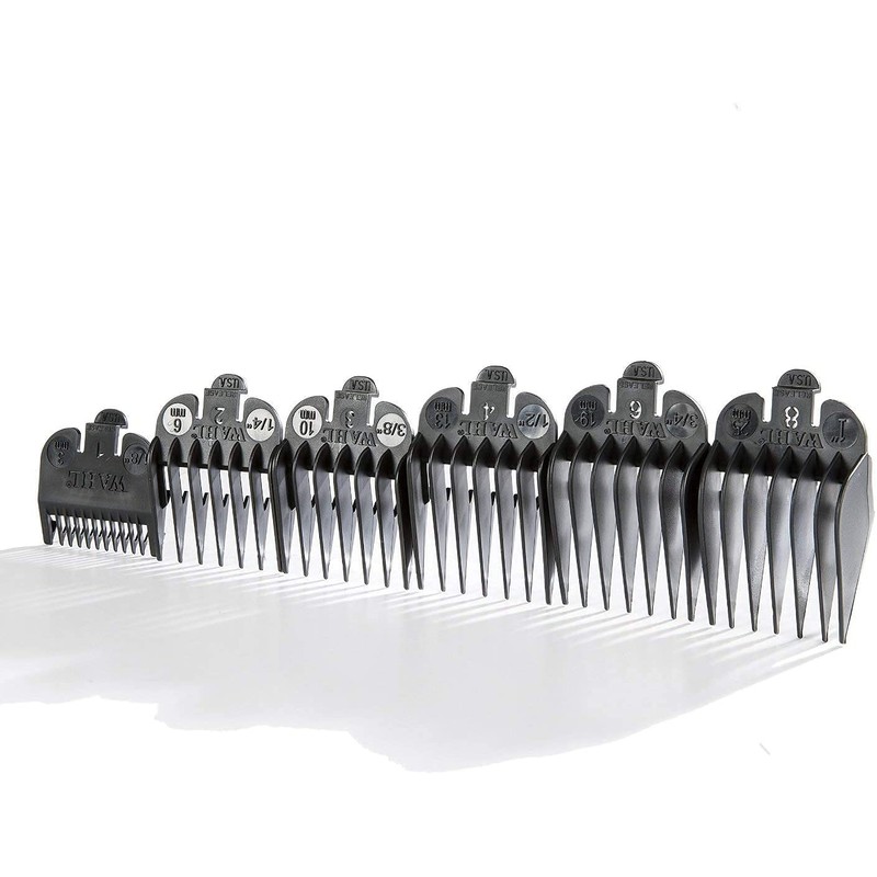 - ACCESSORIES INCLUDED: The clipper, 8 attachment guides (1/8”, ¼”, 3/8”, ½”, 5/8”, ¾”, 7/8”, & 1”), charging transformer, styling comb, brush, blade oil, red blade guard, and operating instructions