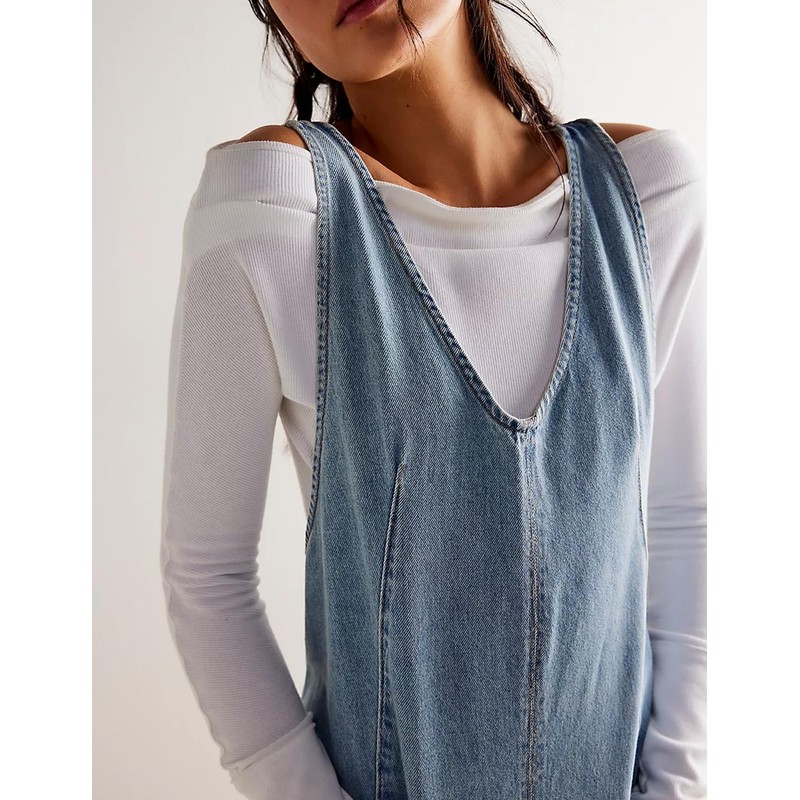 - Features: Adjustable shoulder straps make the denim jumpsuit for women more inclusive, a deep v-neck adds a unique touch, and side pockets make the rompers for women 2024 more suitable for outdoor trips.