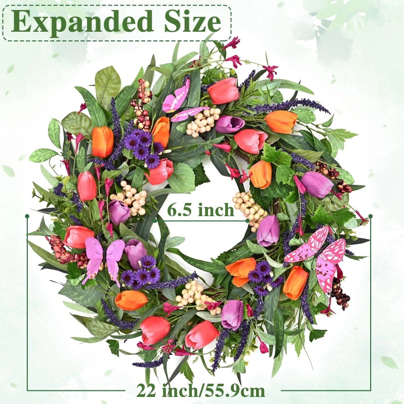 - JUST THE RIGHT SIZE:At an impressive 22 inches in diameter, our artificial wreath garners attention in any setting. Its perfect size captures the eye and fosters a fresh spring ambiance. Choose our wreath this season for an impeccable blend of size and seasonal cheer.