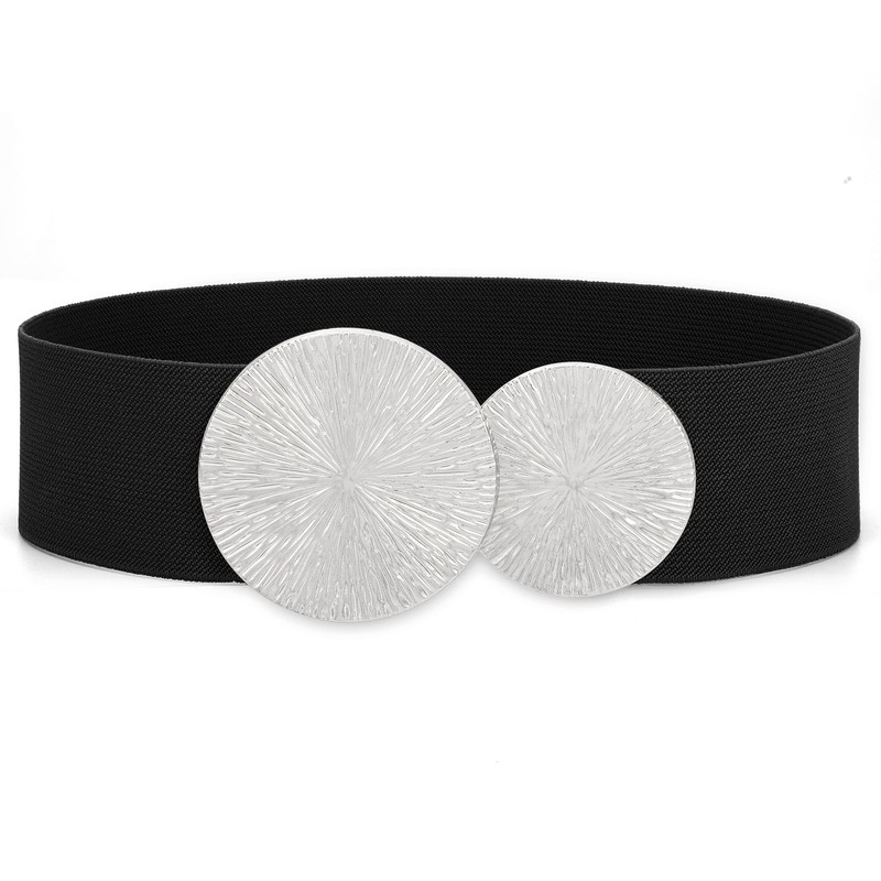 This belt for dress has a double alloy circle and an elastic belt and creates an elegant retro style that gives any ensemble a unique and refined touch.