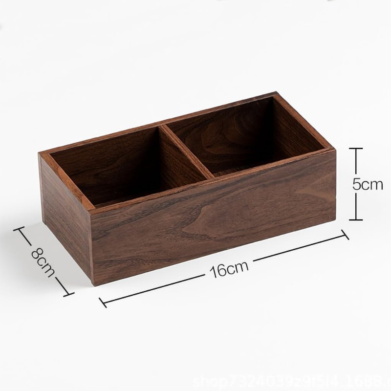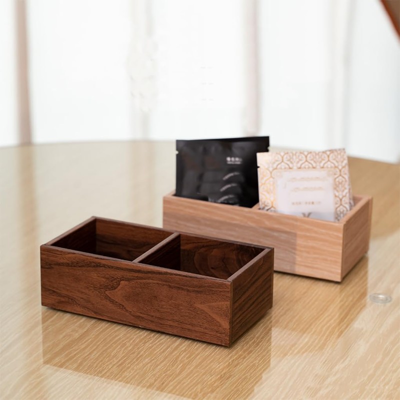 WAIT FLY Wooden Sugar Packet Holder Tea Bag Organizer 2 Chamber Sugar Caddy Dispenser for Kitchen-Dark Brown