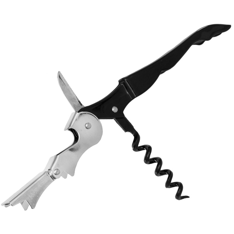 The all-in-one waiter's corkscrew from Mr. Tonic streamlines service by combining three essential tools in one compact design. The built-in foil knife, corkscrew, and bottle opener allow staff to swiftly open both wine and beer bottles. Its pocket-sized form factor ensures quick access and efficiency for any establishment.