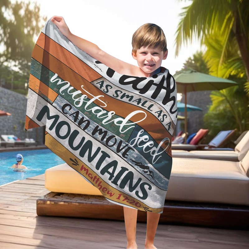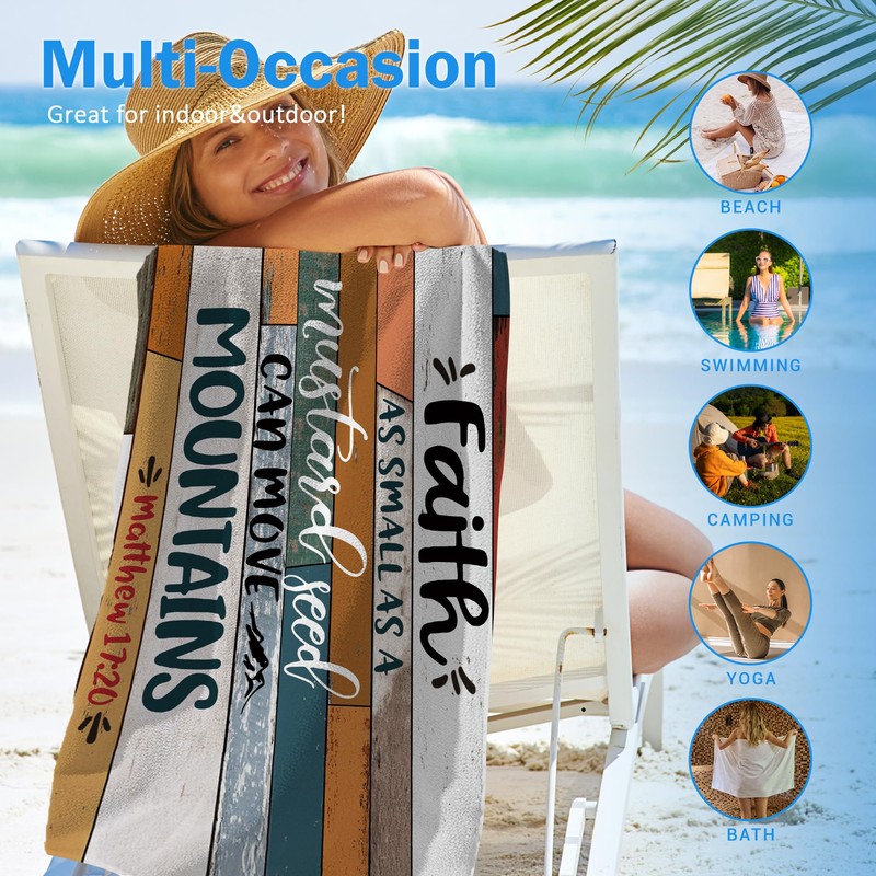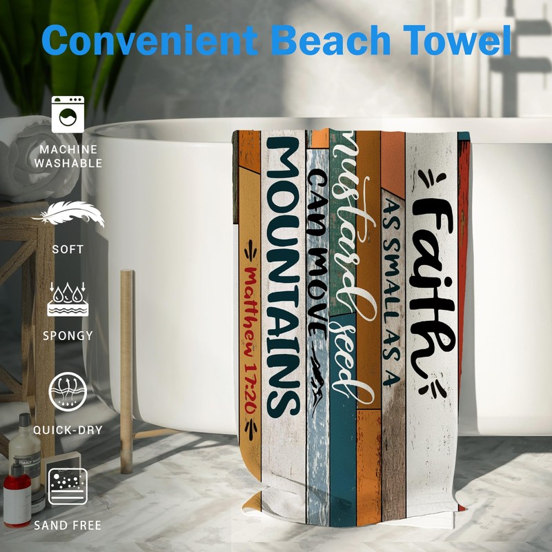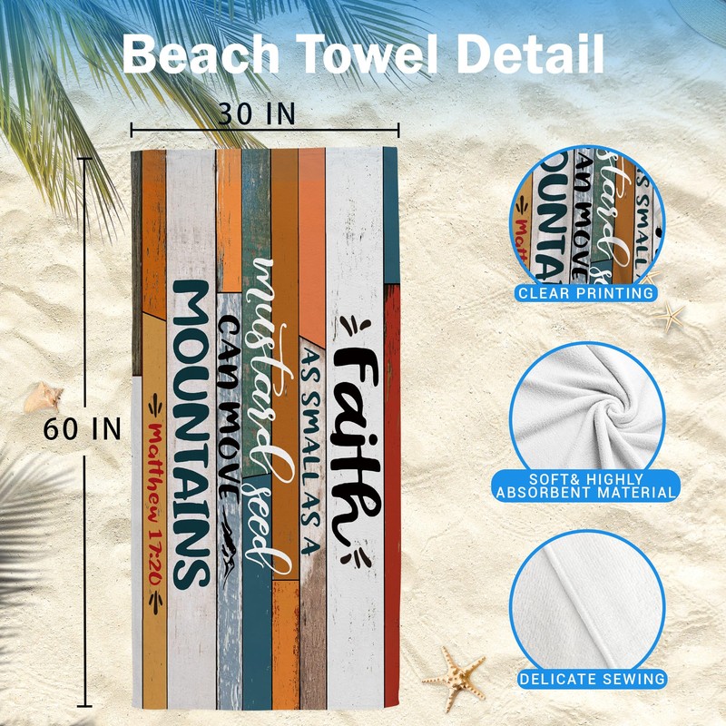 WAITPI Christian Beach Towel, Rustic Bible Verse Farmhouse Microfiber Beach Towels Oversized 30x60 in, Religious Matthew17:20 Quick Dry Travel Sand Free Beach Towel Decor for Bathroom Swimming Pool