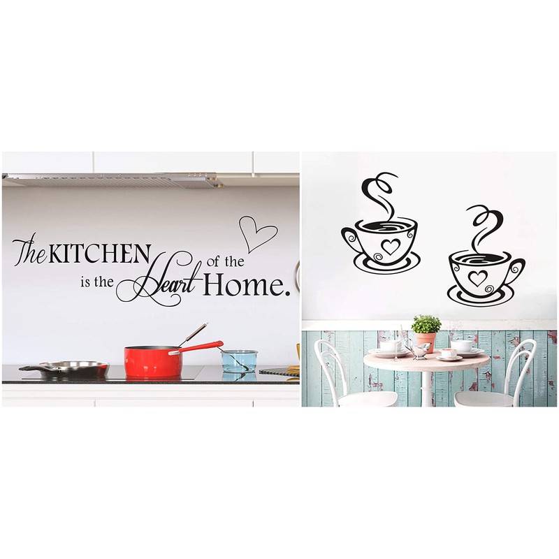 Wajade 2 Sets Kitchen is The Heart of The Home Wall Sticker Quotes Motivational Wall Decals,Family Inspirational Wall Stickers for Kitchen Dinning Room Decoration