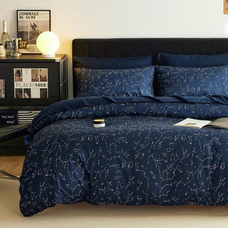 Wake In Cloud - Constellation Comforter Set, Celestial Space Star Galaxy Astrology, Soft Lightweight Bedding for Teen Kids Boys Girls, 3 Pieces, Navy Blue, Full Size
