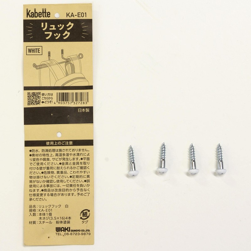 Wake Industry Kabette Wall Storage Backpack Hook, White