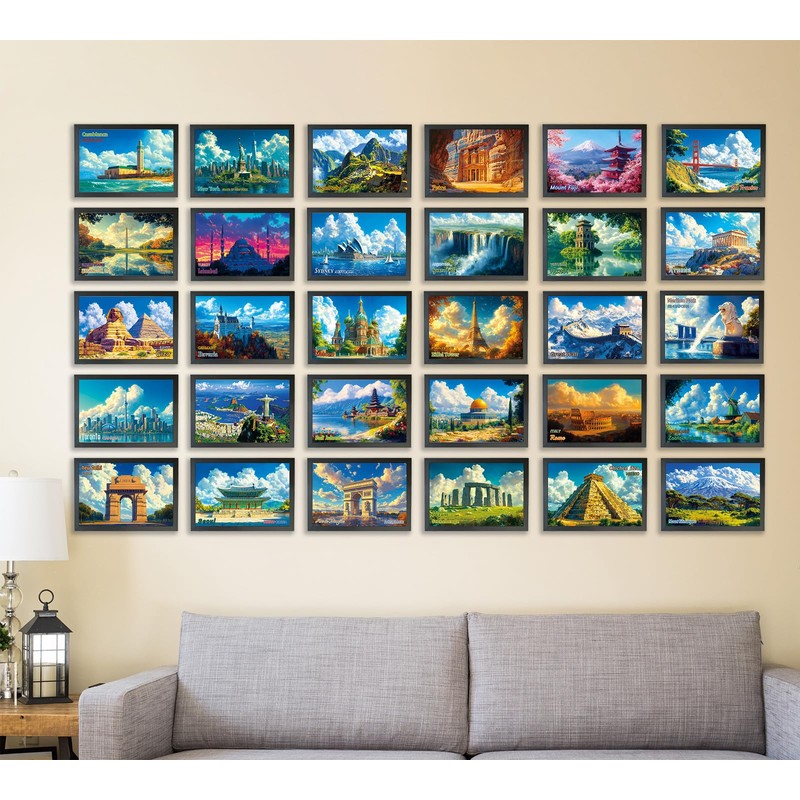 WAKLYVER 50 Illustrated World Landmark Postcards, Around the World Destinations in Vintage Art Style, Global Cities and Famous Sites, 6x4 Collectible Postcard Set for Travelers and Collectors