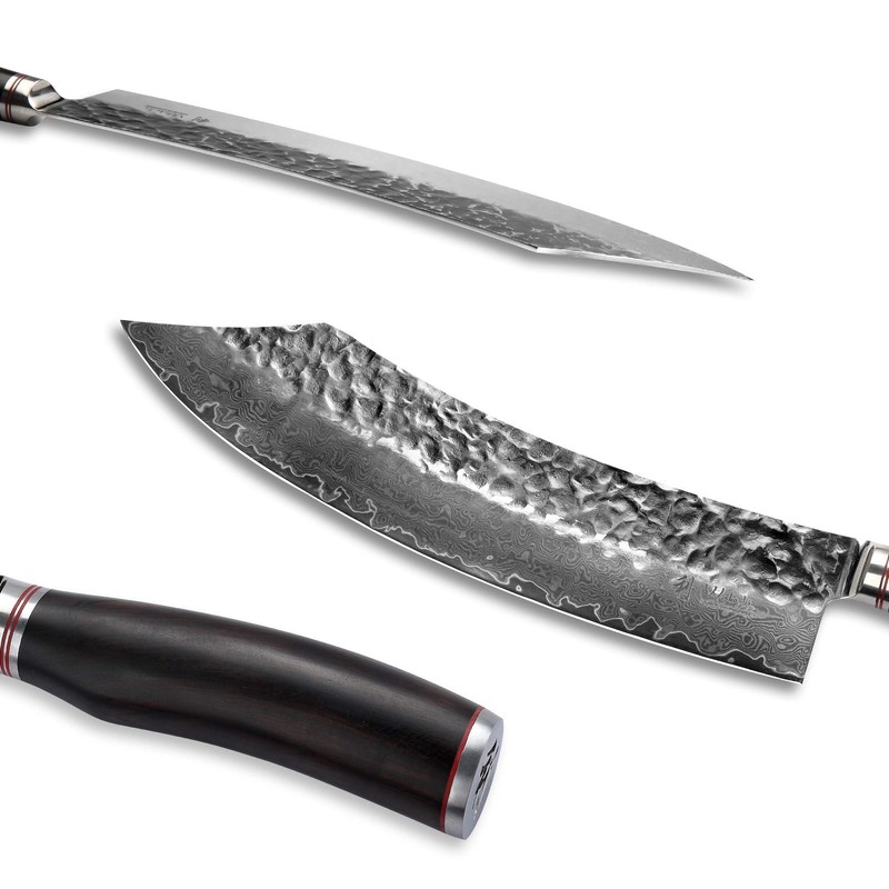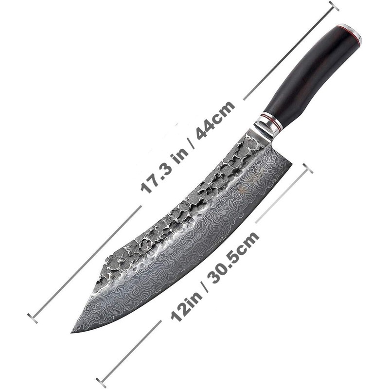 - Perfect Equipment for Professional Chefs: This butcher knife (17.3" knife with 12" blade) is crafted from 67 layers of genuine Damascus steel with VG10 core, achieving an impressive blade hardness of 60±2 HRC
