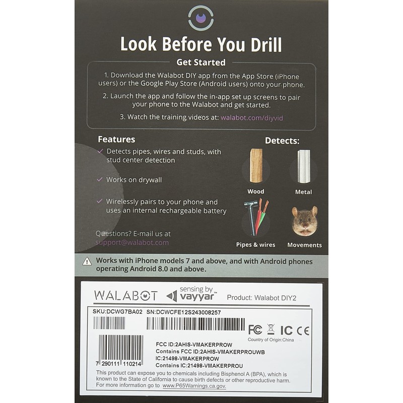 WALABOT DIY 2 - Avanzado escáner de pared/buscador de espárragos - para smartphones Android e iOS