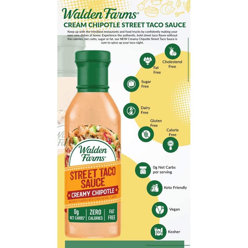 Walden Farms Street Taco Sauce Creamy Chipotle 12 oz. Bottle (6 Pack) - Flavorful, Vegan, Paleo and Keto Friendly, Non-Dairy Milk Substitute - Great for Taco Salads, Burritos, Rice Bowls and Many More