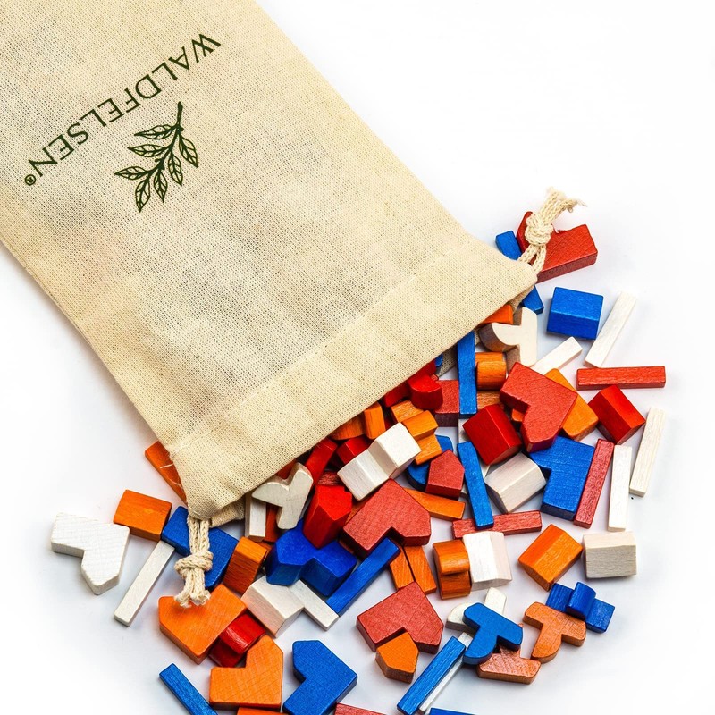 Waldfelsen® Wooden Toy Figures - 16 Cities, 20 Settlements, 60 Streets, 60 Ships, 2 Dice and 2 Robbers Suitable for the Base Game of The Settlers as well as Sailors and Cities and Knights