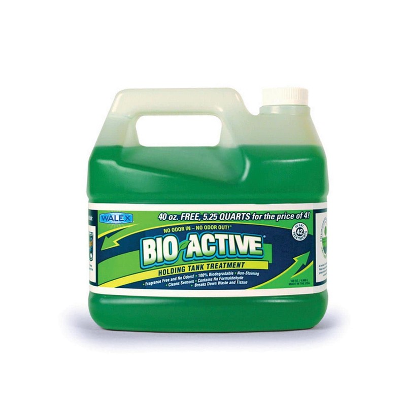 Bio-Active Holding Tank Treatment uses powerful, 100% environmentally friendly ingredients to break down and liquefy waste and tissue by speeding up the natural composting process. Its 100% biodegradable formula prevents clogging and also lubricates valves and seals for better overall performance. This formaldehyde-free liquid is non-staining and fragrance-free.Specifications:. Size: 168 oz.. Weight: 15.5 lbs.. Model#: BIO-72168