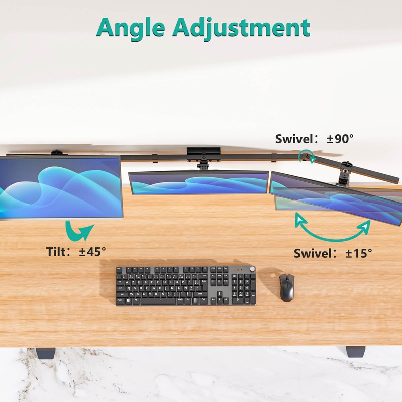 - Fully Adjustment: Adjustable mount offers +45° to -45° tilt, +/-15° swivel, and 360° rotation for comfortable viewing angles. Monitors can be placed in portrait or landscape orientation