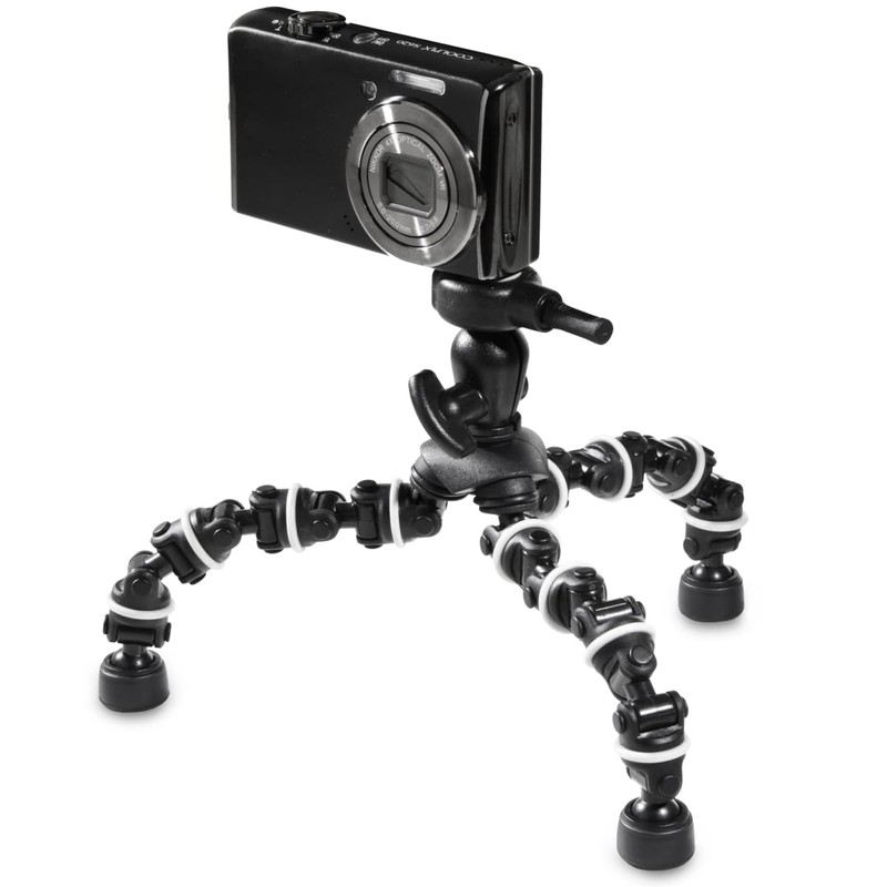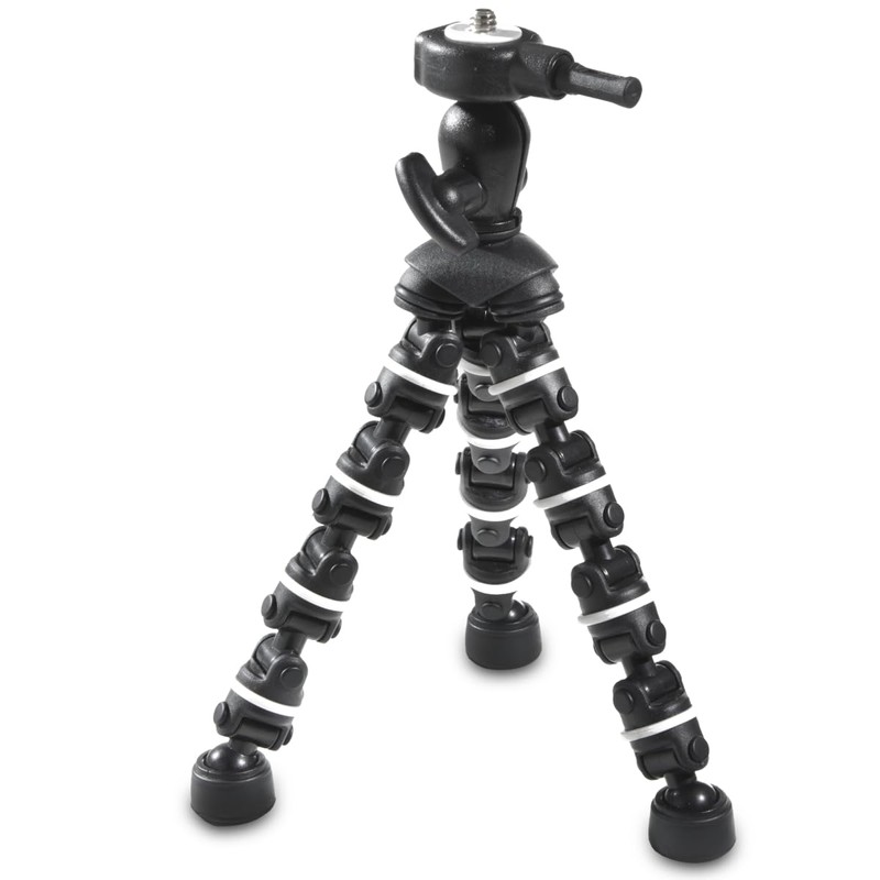 The Multiflex Tripod is namely more than a tripod in mini format. With its seven joints per leg, it is high-grade flexible and bendable and can adapt to every branch, fence and stairrail as well as every situation. Even as normal table tripod, it provides grip and stability thanks to the rubber feets. The quick-release plate with 1/4 inch connection offers the accustomed connection for your compact camera. The small carrying sizes of the little spider monkey have moreover the advantage that it fits in every small pocket.