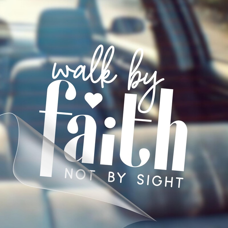 Walk by Faith, Not by Sight - Christian Jesus Cross Car Vinyl Decal Bumper Sticker for Car, Wall, Window, Vehicle, Weather Resistant, Viral