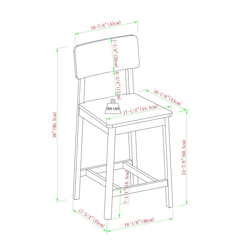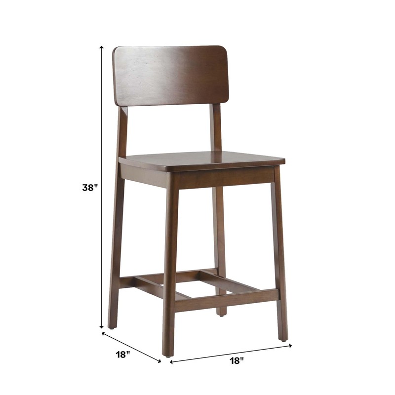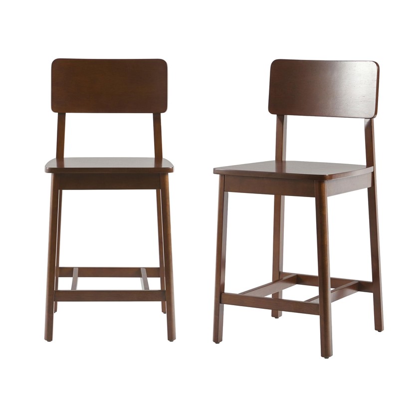 Walker Edison 2-Piece Minimalist Solid Wood Counter Stool, Set of 2, Walnut
